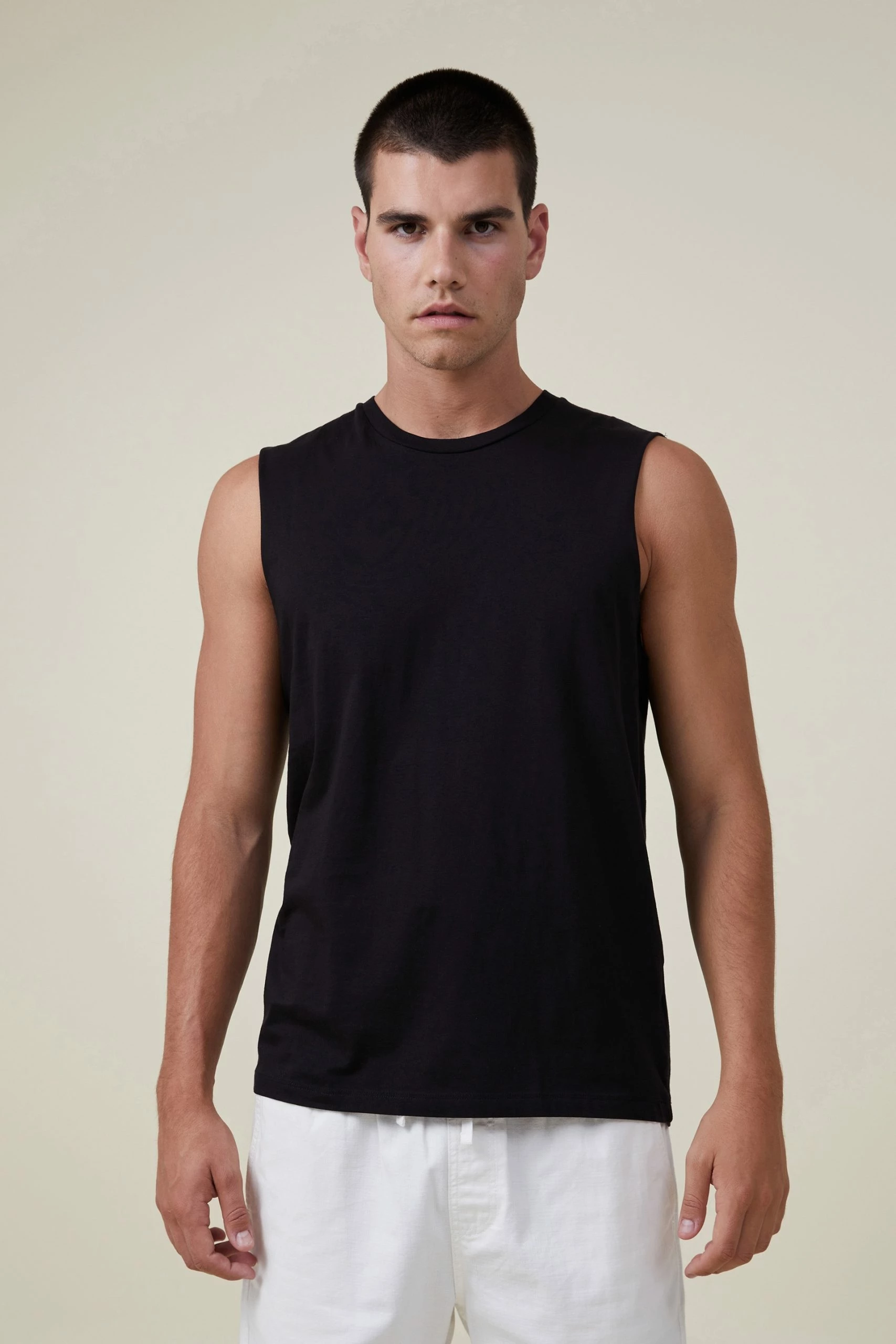 Crafted from Organic Cotton, this muscle Tee offers comfort and a modern look. This tank has a sleeveless design and standard body length which offers a great range of motion.
