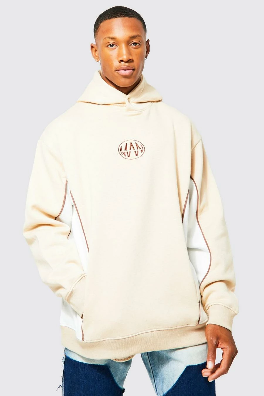 Oversized Graphic Hoodie With Piping