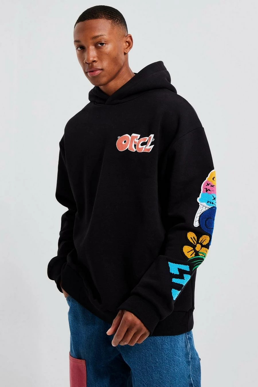 Oversized Hoodie With Sleeve Applique