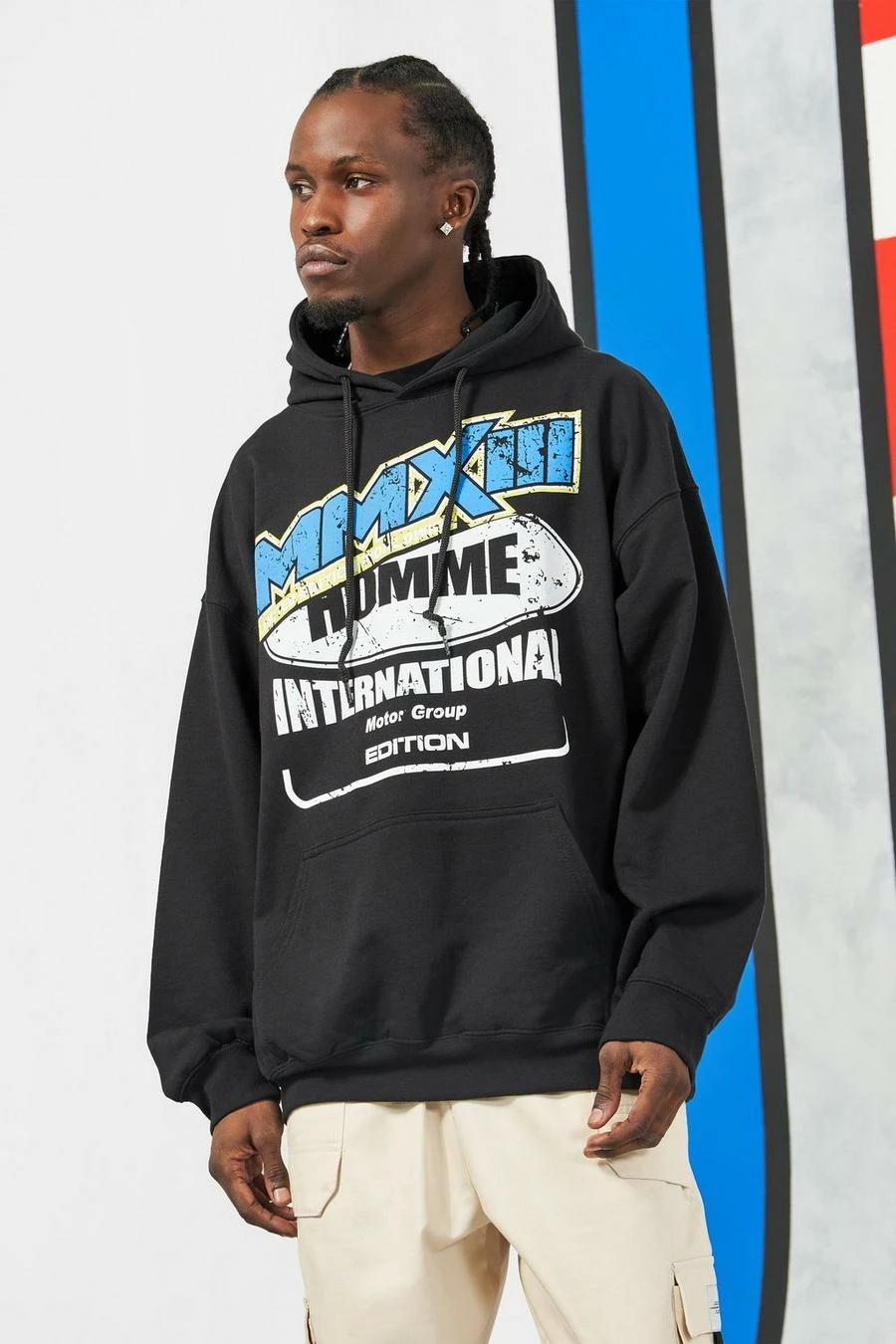 Oversized Moto Graphic Hoodie