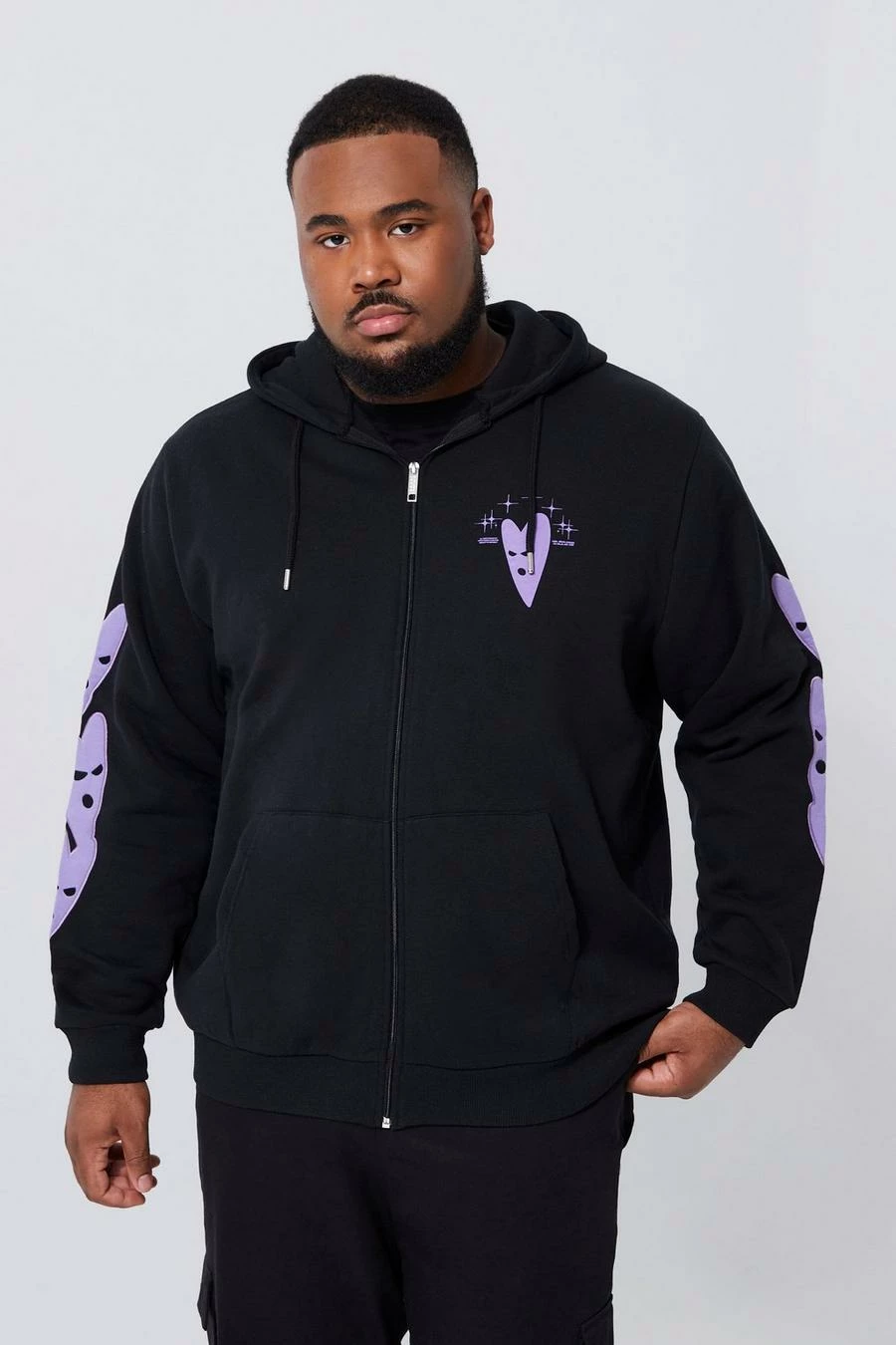 Plus Zip Through Applique Sleeve Hoodie Contrast Stitch