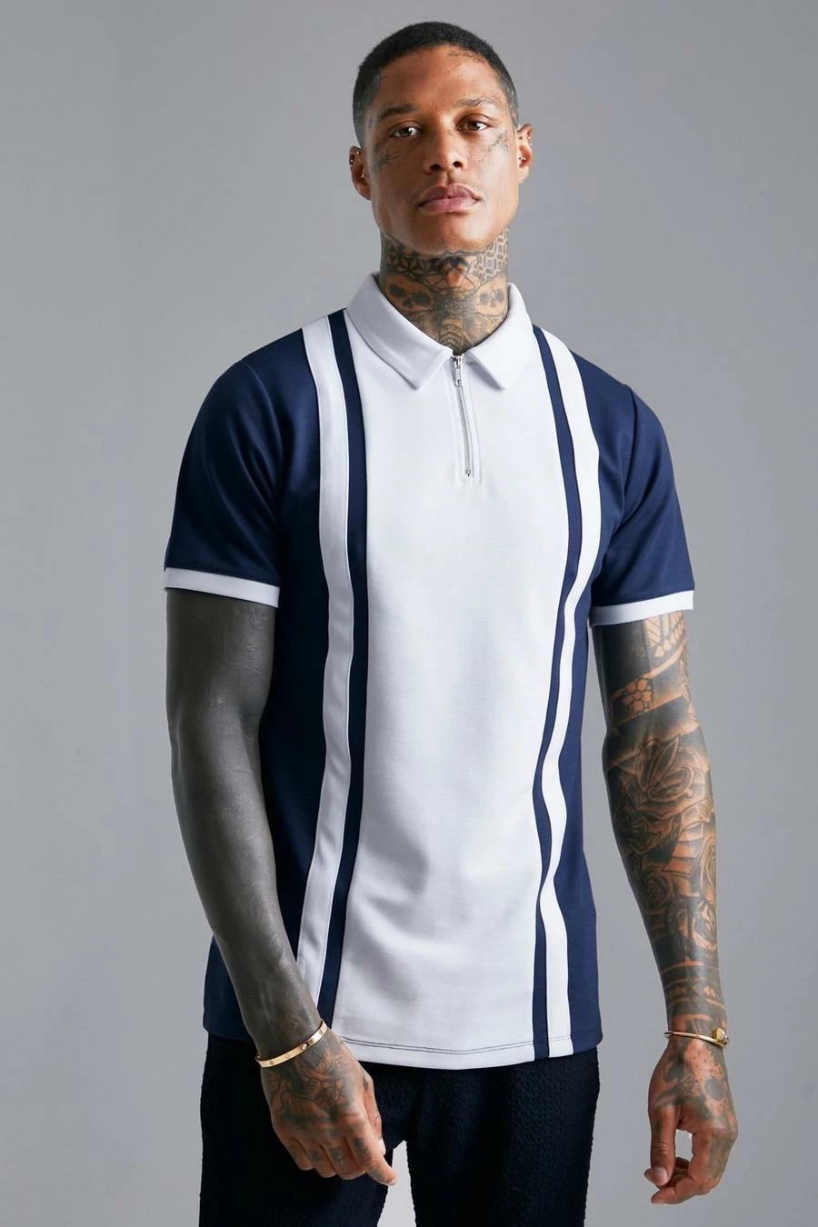 Smart Slim Fit Zip Polo With Contrast Panel